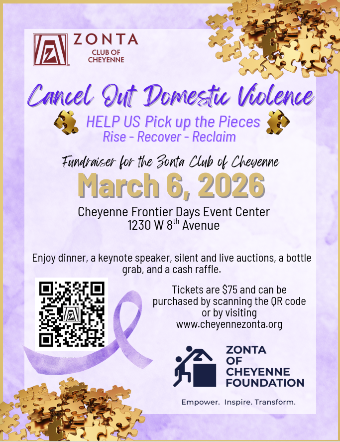 We had amazing sponsors, donors, and bidders who helped us raise over $30,000! The funds will be spread across Zonta International, the Cheyenne Zonta Foundation, the education fund for our Zonta Club of Cheyenne, and some much–needed improvements to Cheyenne’s Safehouse.